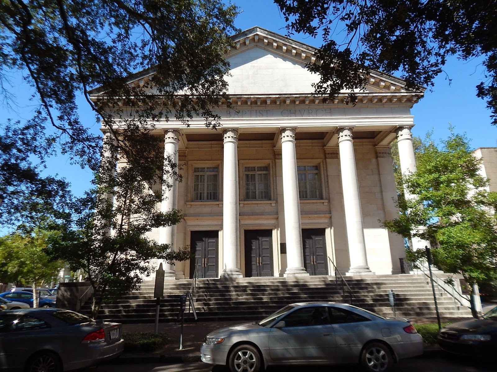 expensive building in Savannah. The sign says it is granite and glazed brick